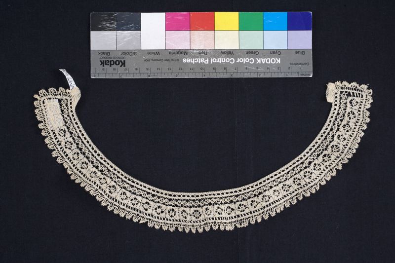 Krage, knypplad av vit lingarn med linne slagsbottnar och friliggande