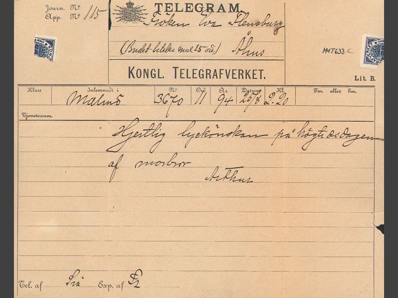 Hjertlig lyckönskan på högtidsdagen af morbror Arthur.