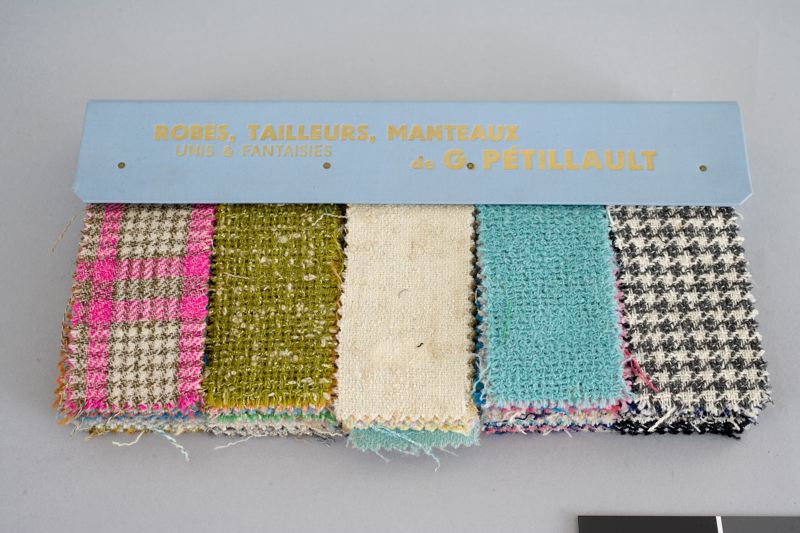 Ylleprover i olika färger: Text: "Robes - Tailleurs - Manteaux de G.