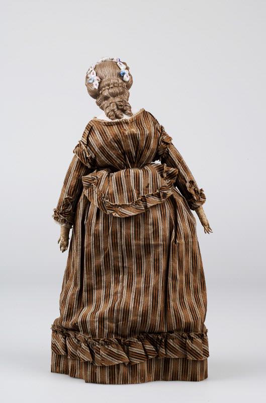 underkjolar, liv, kjol och skört av brunrandigt delvis chénémönstrat