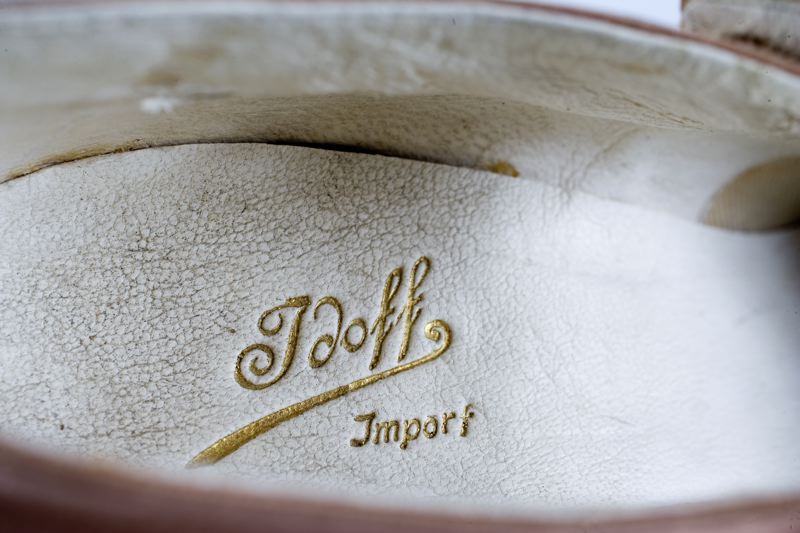 hög klack, lädersula, foder och innersula av vitt skinn. Märkt "Idoff,