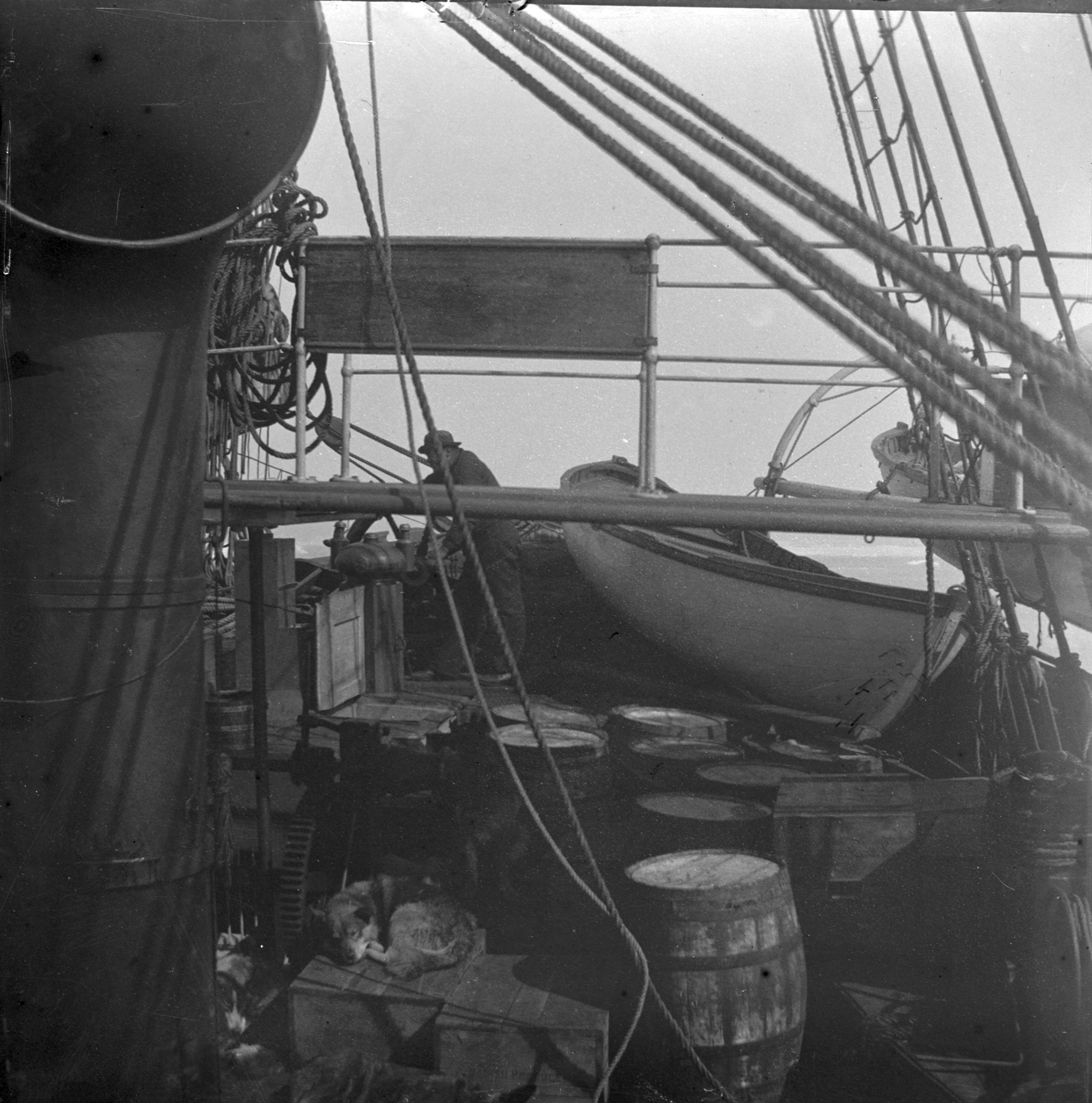 - Fritjof Nansens polarexpedition "Frams" akterdäck med Peder Henriksen vid rodre. "Nansen, Fridtjof, född 10 oktober 1861, död 13 maj 1930, norsk upptäcktsresande, oceanograf och diplomat. År 1893 inledde Nansen den expedition med Fram som gjort honom mest berömd. Iakttagelser av havsströmmarna hade övertygat Nansen om att det var möjligt att med hjälp av isdriften låta ett fartyg genomkorsa Polarhavet från öster till väster." (NE 2011)