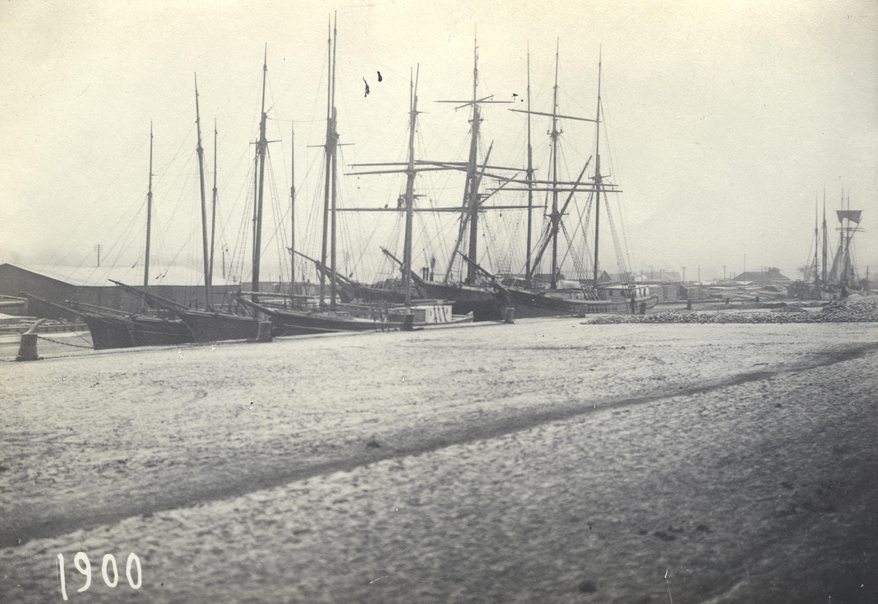 Norra Vallgatan utanför Bagersgatan. Skepp i bakgrunden