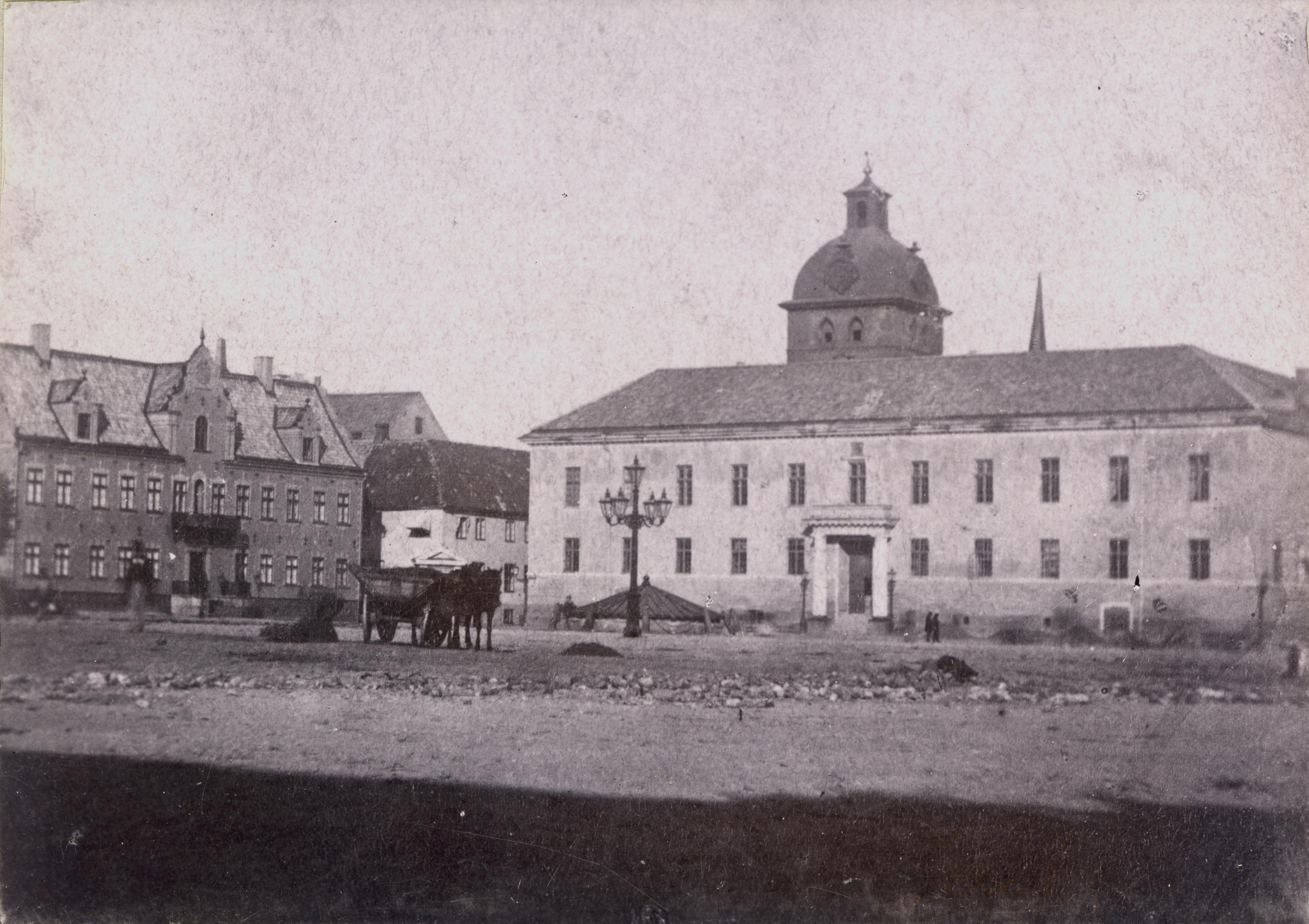 Malmö Rådhus före restaureringen framför vattenkonsten