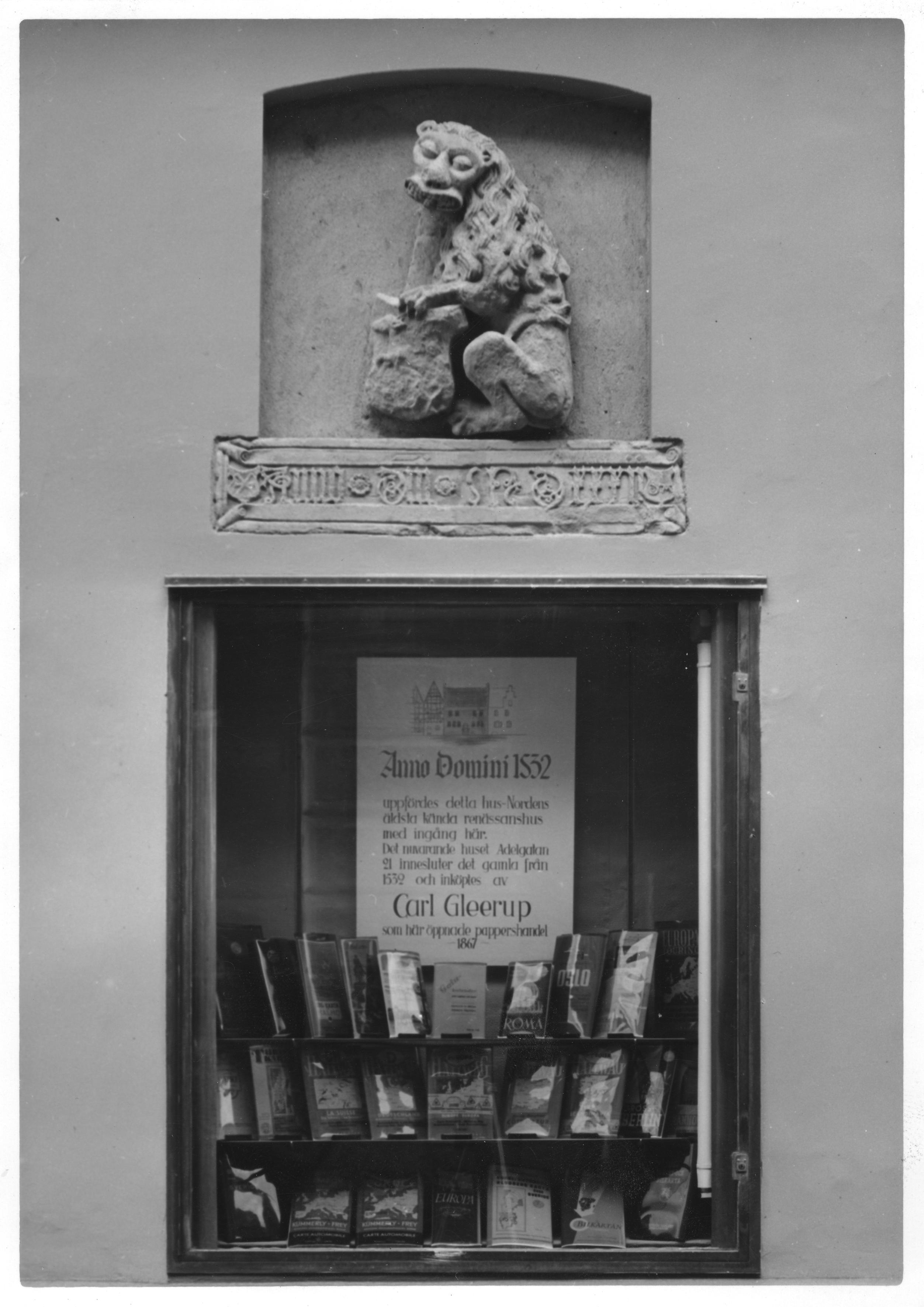 Skyltfönster i Gleerups bokhandel Skrift om husets historia