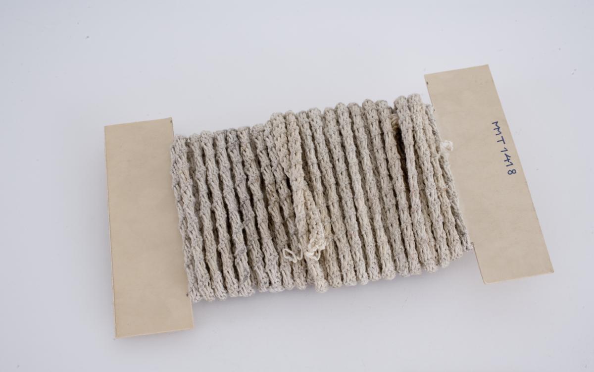 Klädstreck virkat av oblekt fiskegarn bestående av två delar.