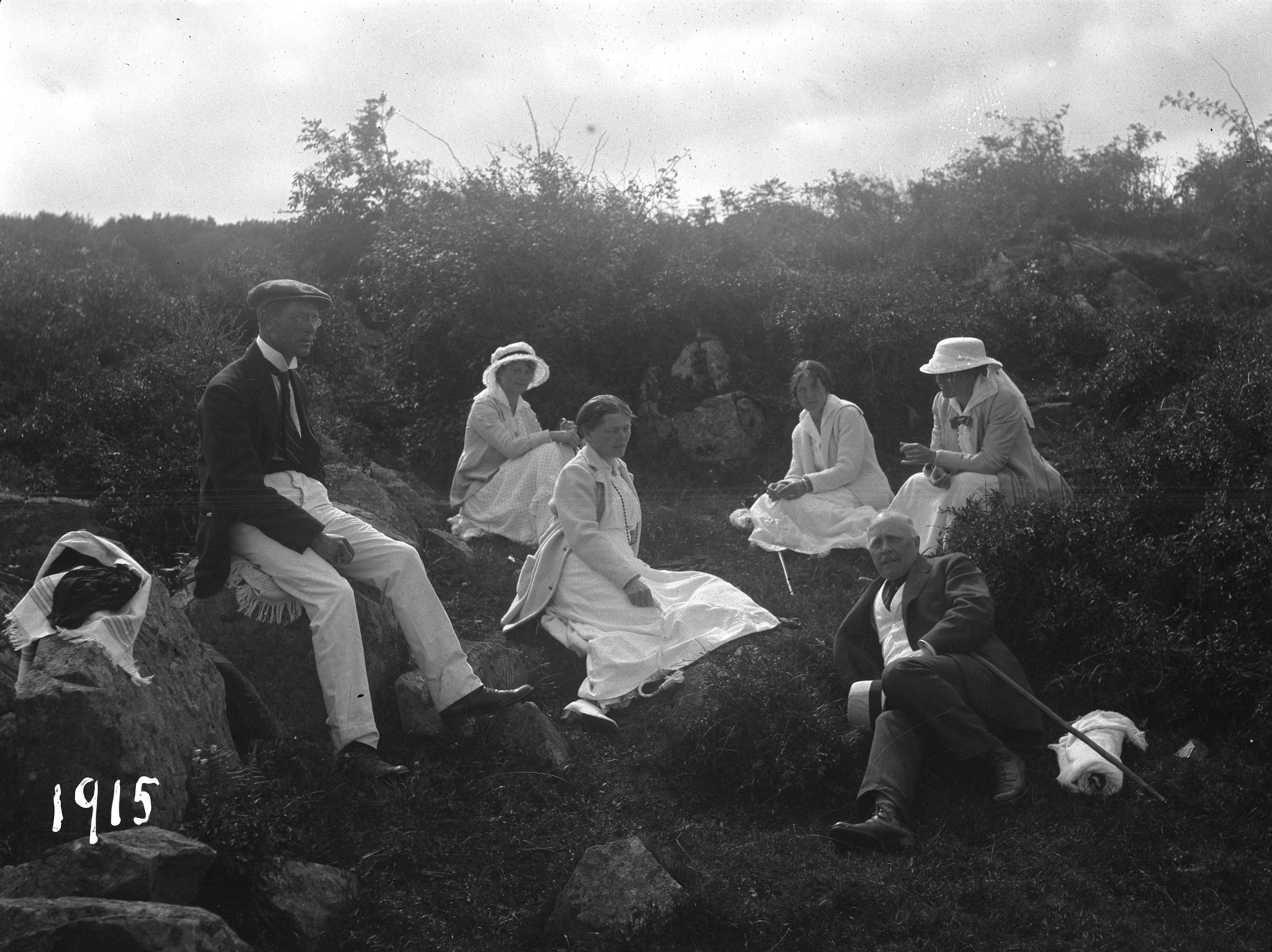 Gruppbild, exteriör; Einar, Siri Hallberg, Sigrid Bökman, Maria, Erik Bökman, Ellen