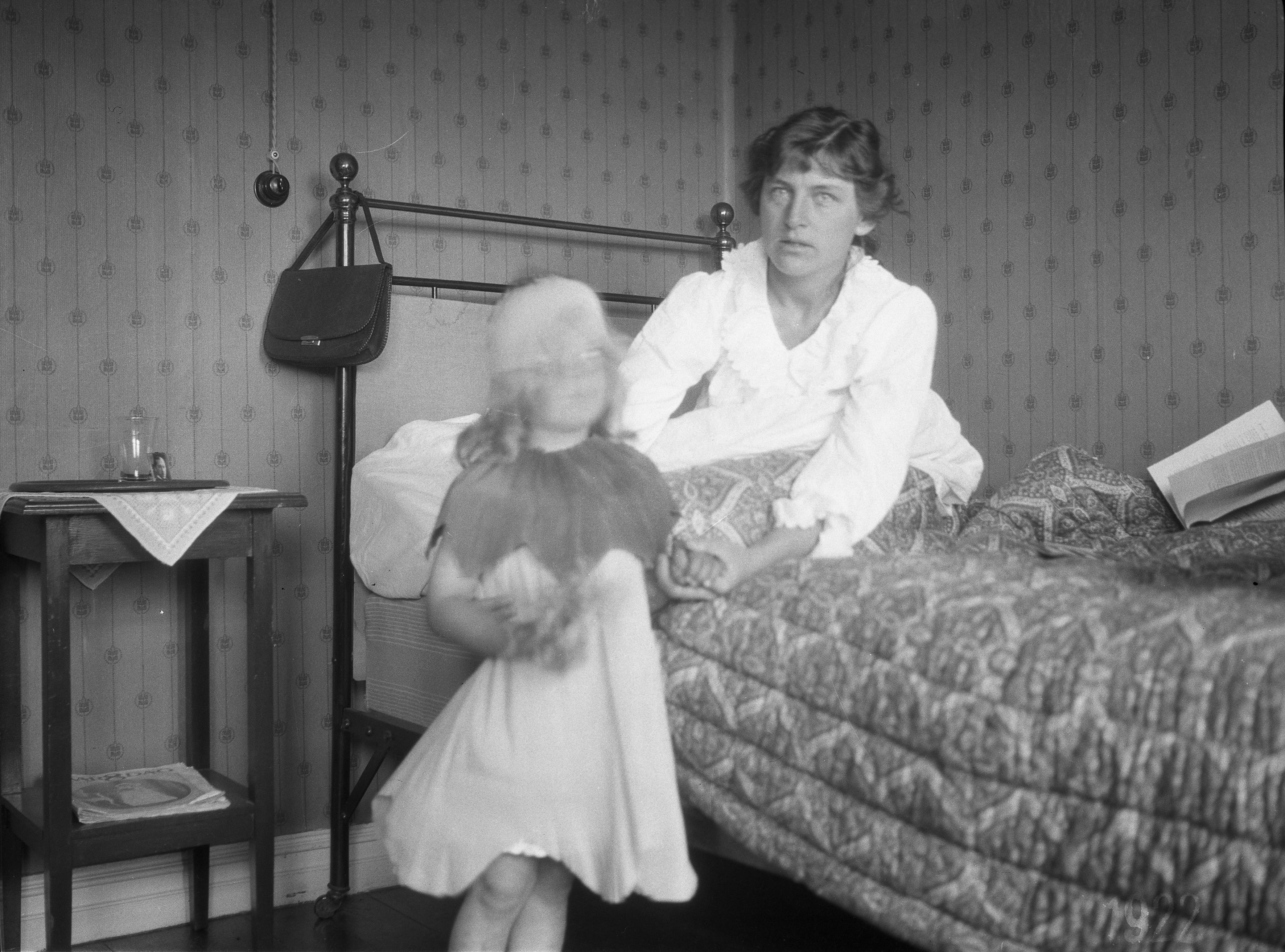 Henny och Märta i en säng, uppvaktning på Hennys födelsedag