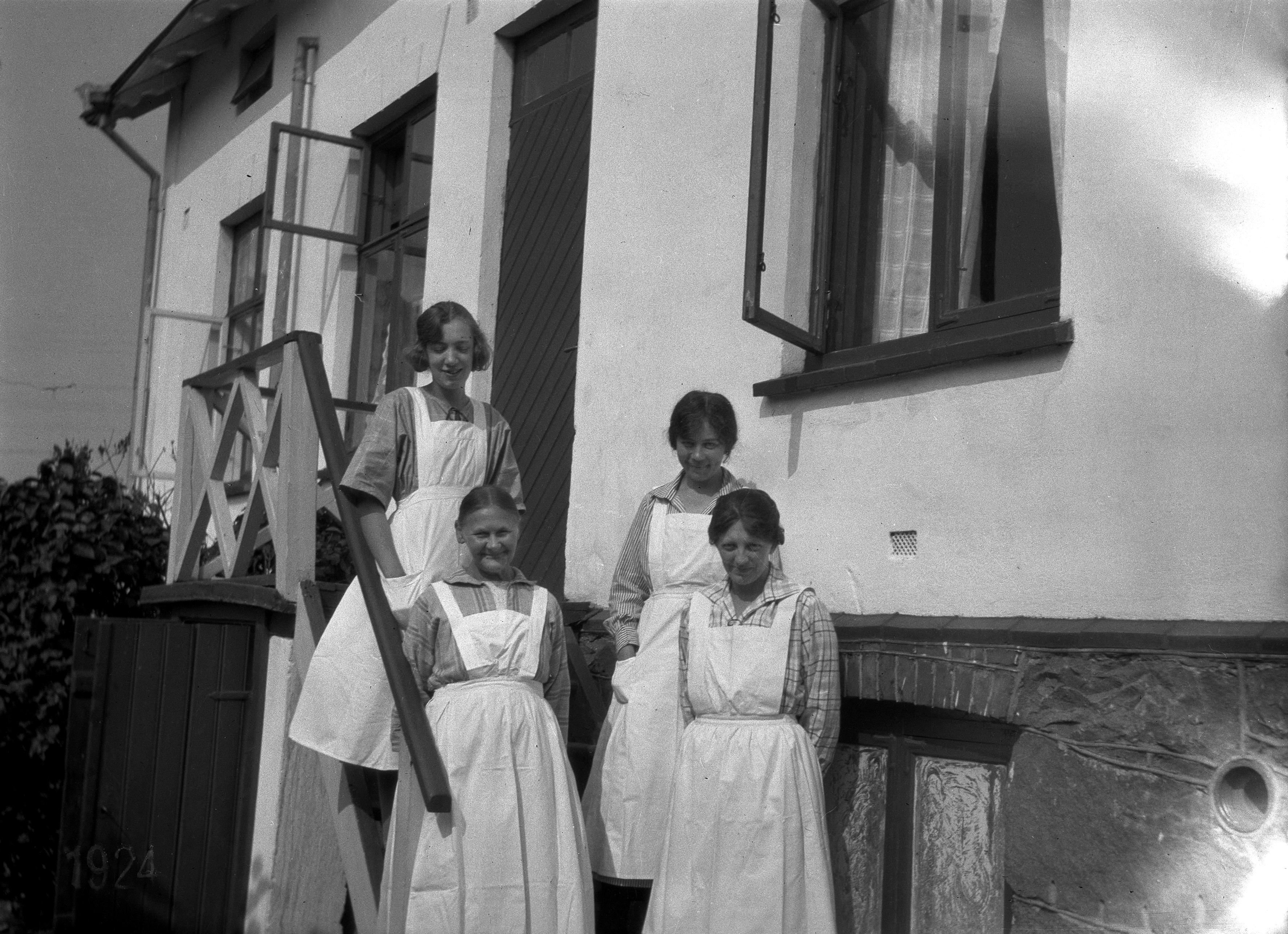 Fyra kvinnor vid huset, Maja, Tekla, Mathilda och Jenny