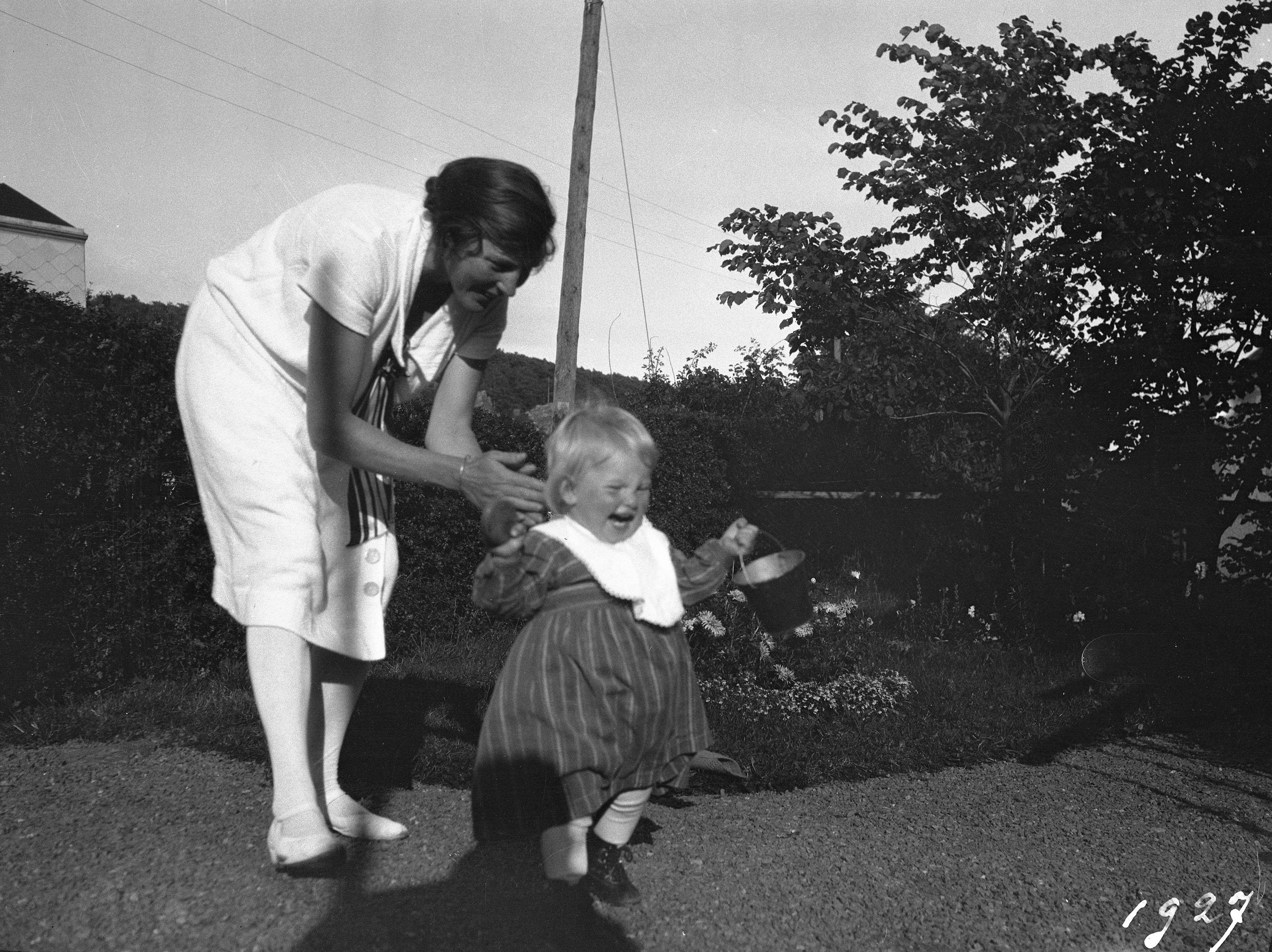 Inger och Henny i trädgården