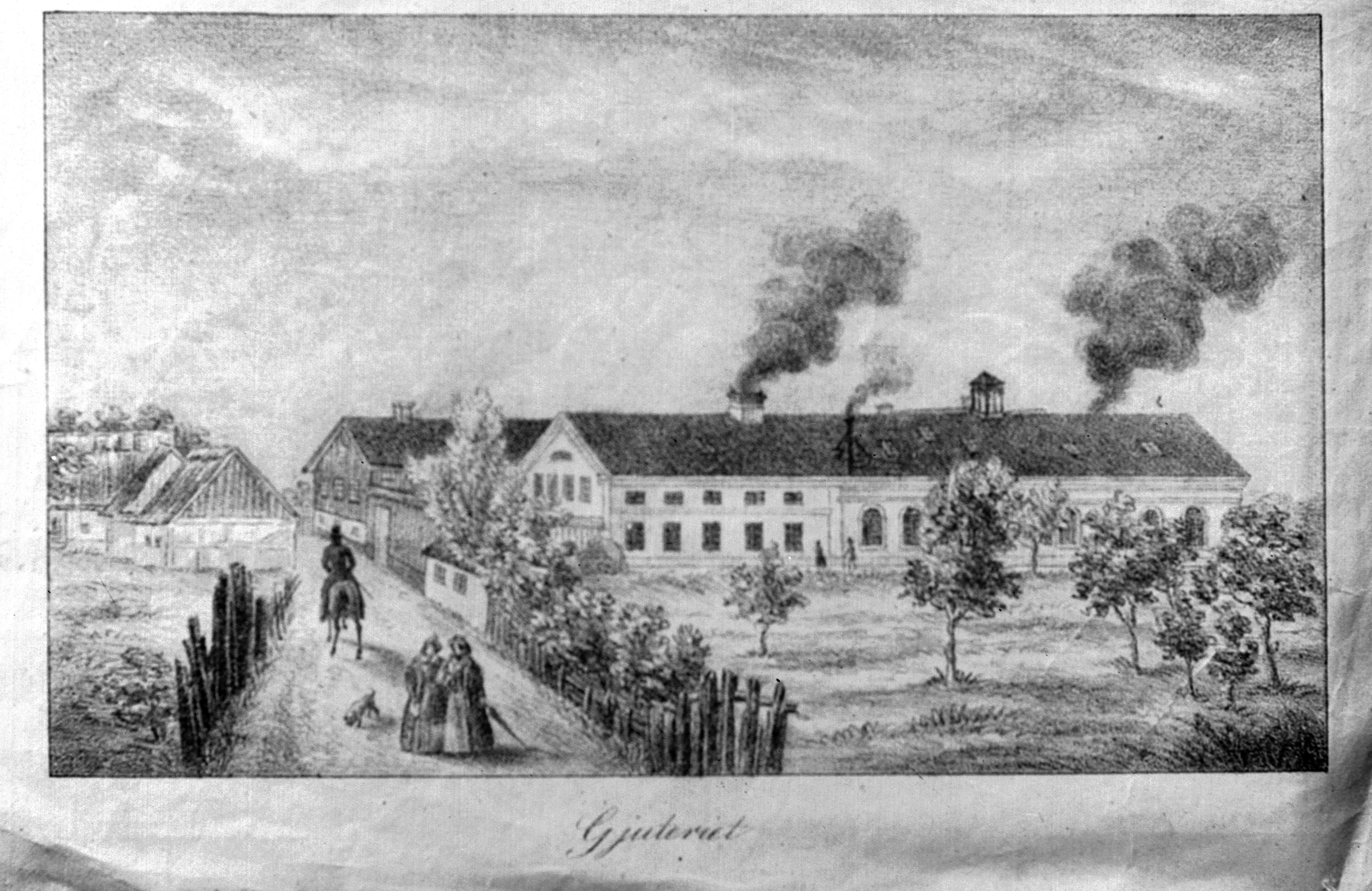 Kockums mekaniska verkstad vid Kärleksgatan, teckning Gjuteriet