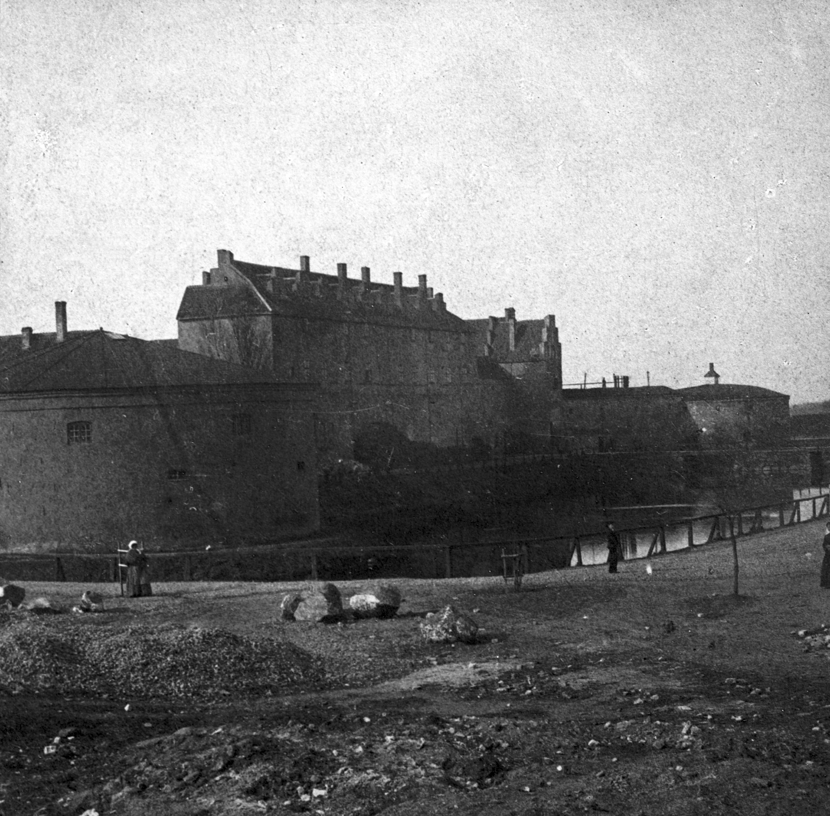 Malmöhus från NO på 1860-talet. Stereobild högra delen.