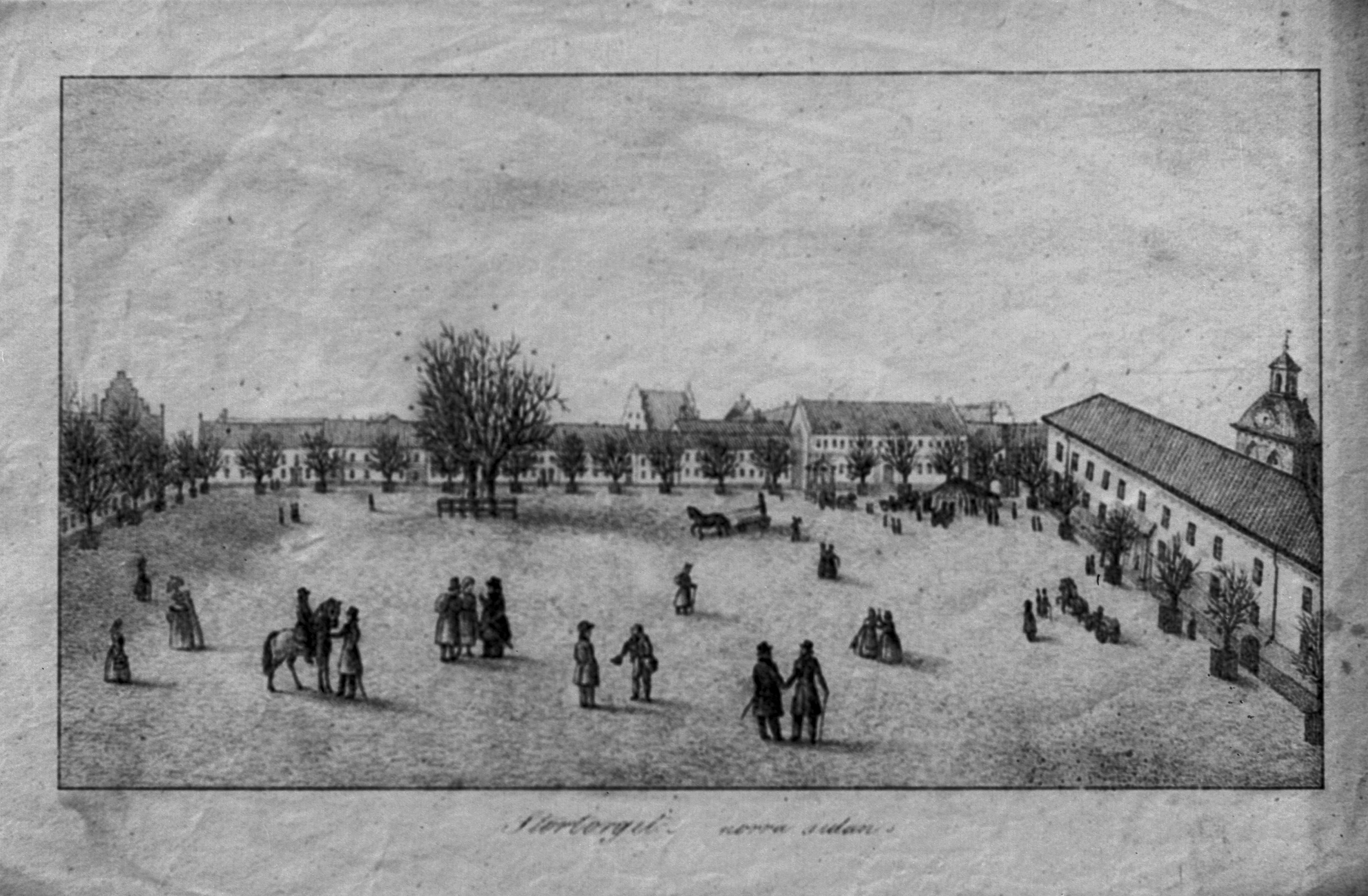 Stortorget, teckning av Dahlberg. 1840