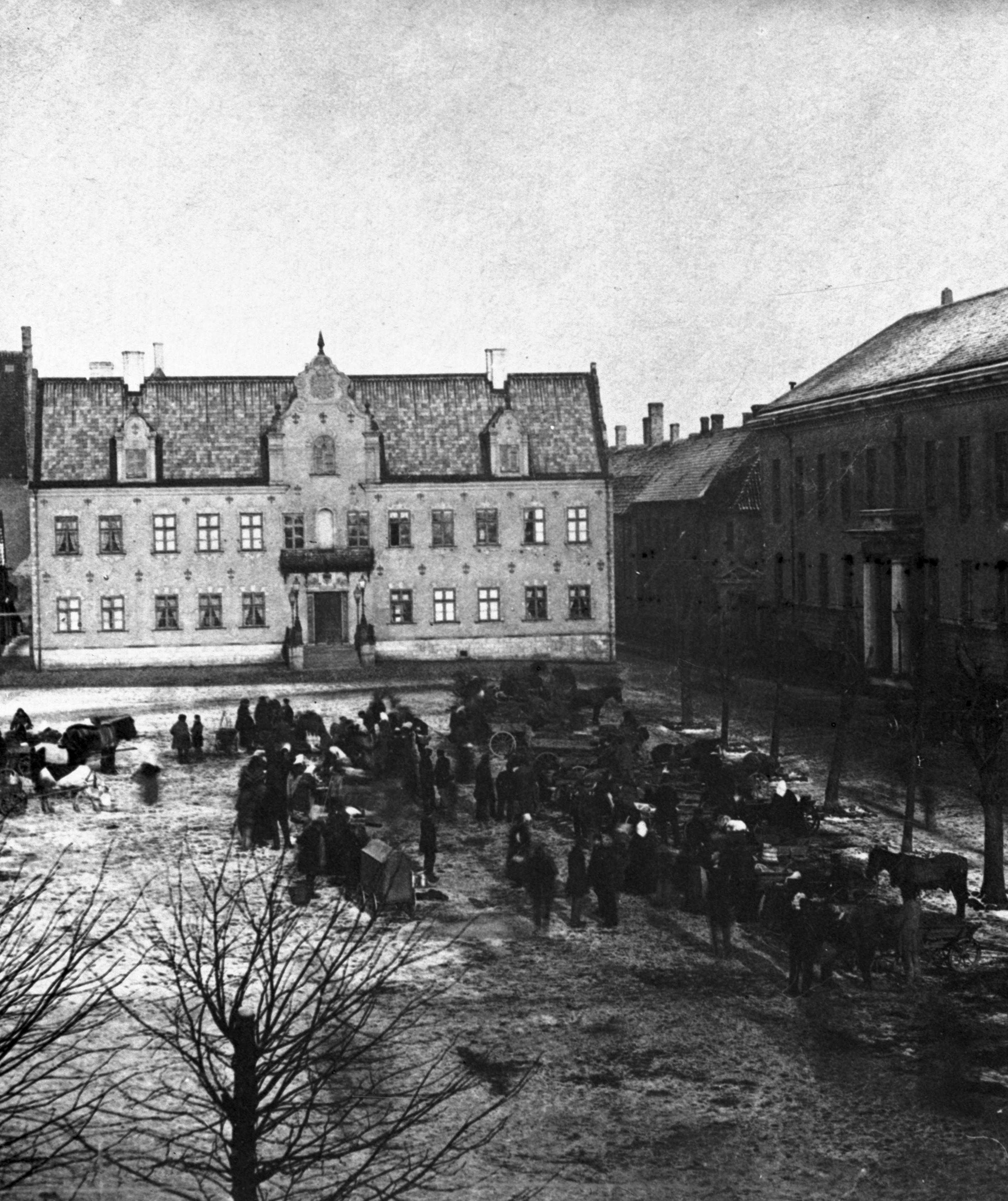 Stortorget, nordöstra delen med lindar. Torgdag.