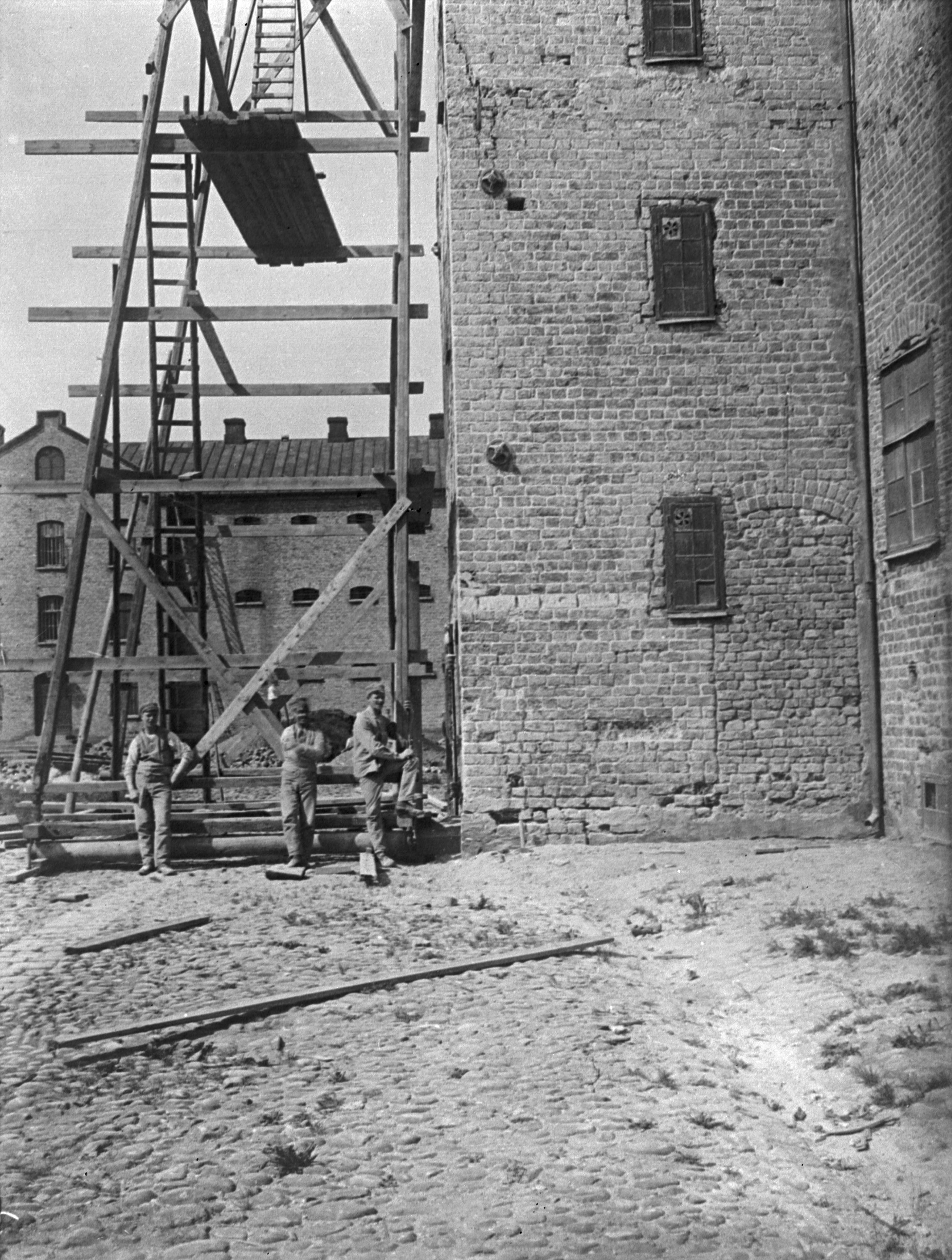 Malmöhus slott, från utgrävningarna på borggården år 1921, byggställningar