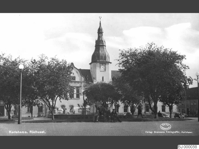 Rådhuset från 1899 vid Stortorget med Conrad Carlmans fontän "Böljelek"