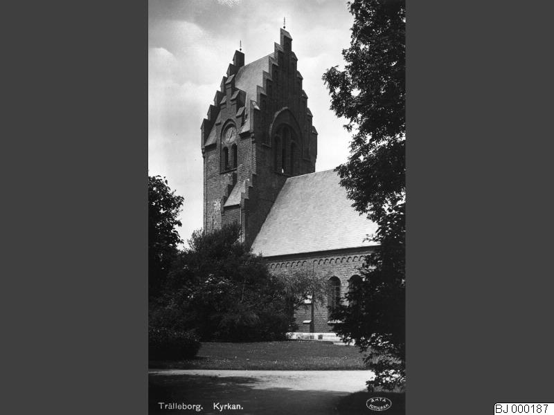 Trelleborgs kyrka uppförd på 1200-talet. Åren 1881-1883 ombyggdes kyrkan helt under ledning av Helgo Zettervall.