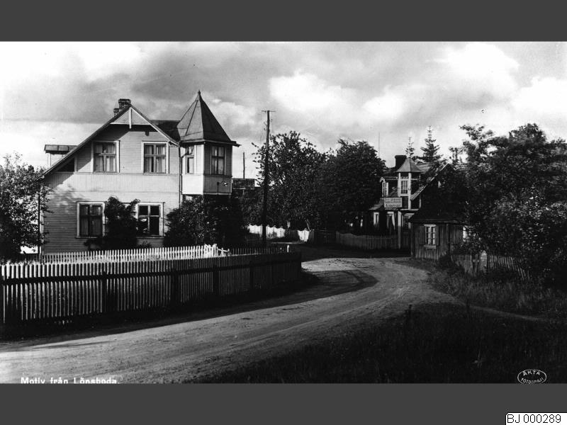- Lönsboda. August Perssons Matvaruaffär och Bror Wiklunds Manufaktur- och Modeaffär och Accidenstryckeri. August Persson var född den 29 oktober 1872 i Örkeneds socken och han hade etablerat sin firma i specerier och kolonialvaror i förening med bagerirörelse år 1904. Bror Wiklund var född i Stockholm den 20 oktober 1884 och han hade etablera sin firma i manufaktur, modevaror och korta varor i förening med accidenstryckeri och pappersvaror år 1908. Bror Wiklund var dessutom ledamot i kommunalfullmäktige.