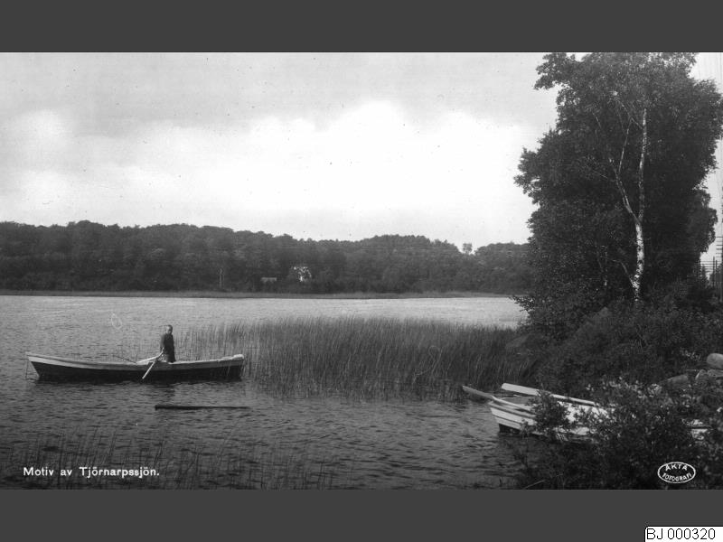 Motiv från Tjörnarpssjön, en pojke i en eka Västra Göinge härad