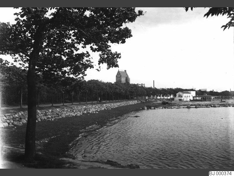 BJ 000374 :: strand, havskust, badhus, restaurang, träd, utställning