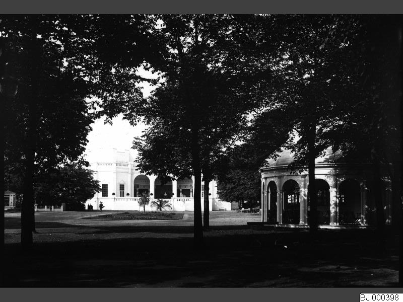 BJ 000398 :: utställning, park, kafé, träd, blomrabatt