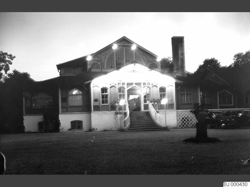 - Bjärred saltsjöbad, hotell i kvällsbelysning, exteriörbild.