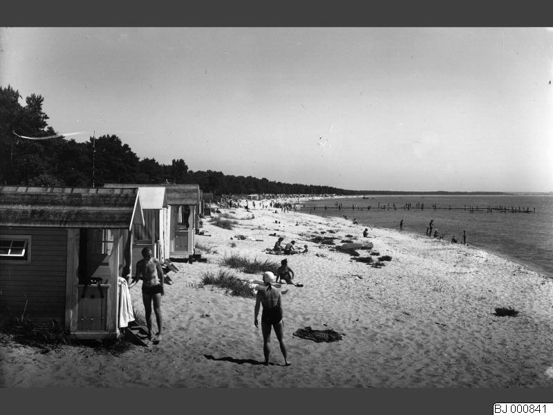 BJ 000841 :: badplats, brygga, badhytt, baddräkt, strand, havskust