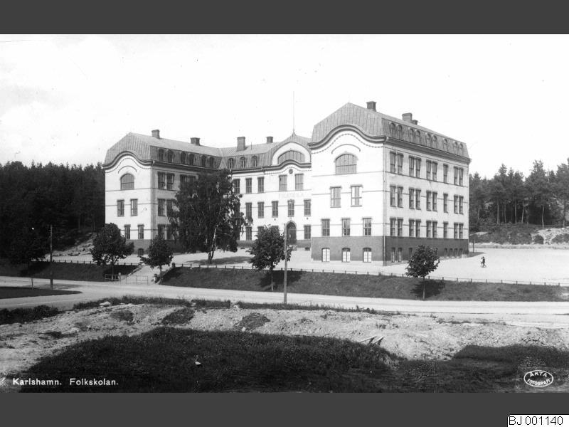 BJ 001140 :: folkskola, ur, telefonledning, träd