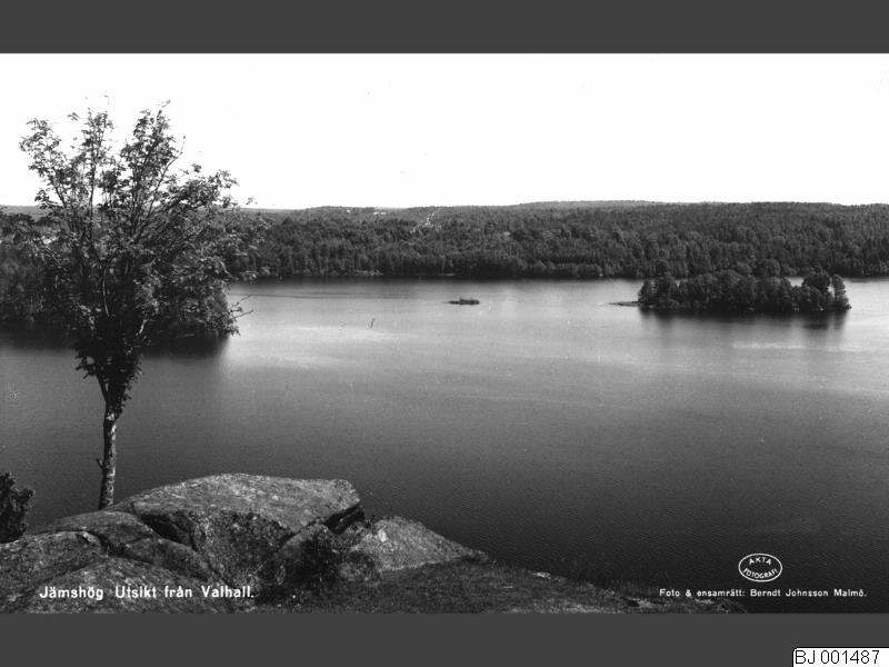 BJ 001487 :: sjö, lövskog, berghäll, träd