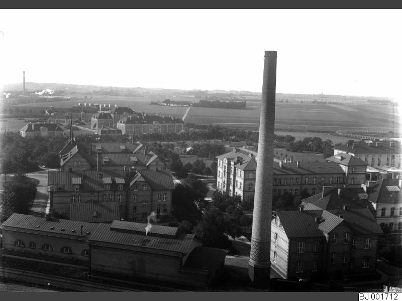 BJ 001712 :: sjukhus, skorsten, järnväg, telefonledning
