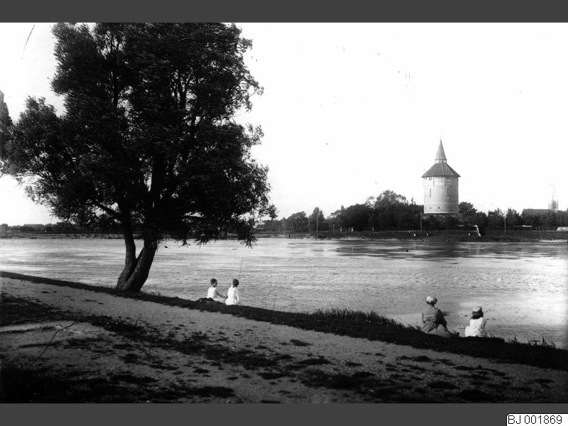 Malmö. Pildammarna. Vattentornet och S:t Johannes kyrka i bakgrunden.