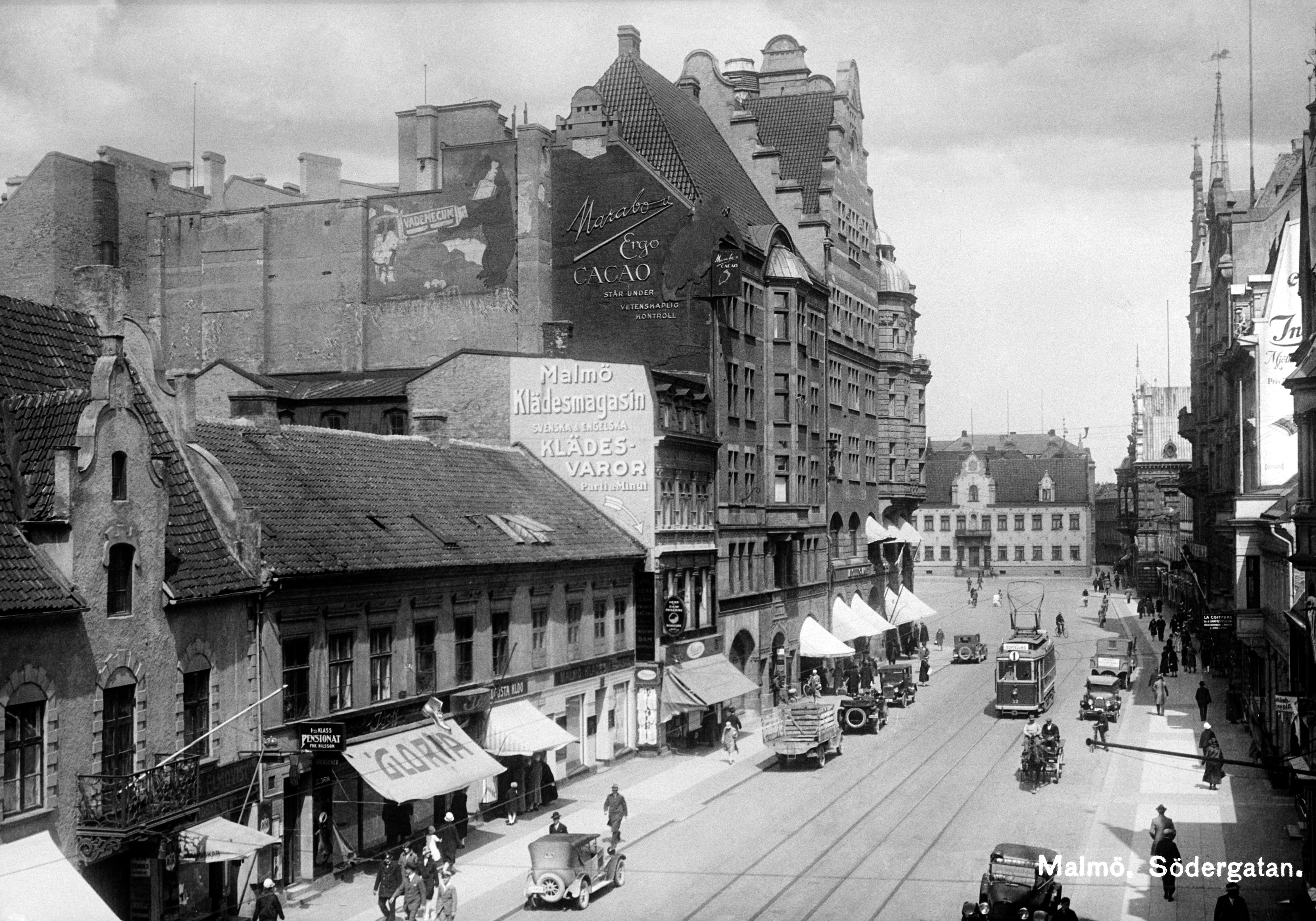 gatubild, bilar, gata, husreklam, södergatan, stortorget, stadstrafik, bil, spårvagnar, spårvagn, gator, skylt, skyltar, stadsbebyggelse