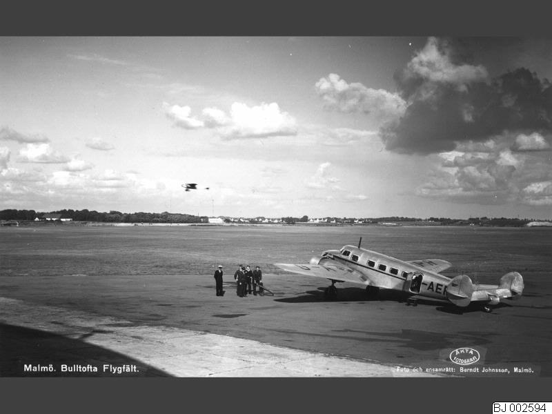 Bulltofta tidigast år 1937. G-AEPR, en Lockheed 10 Electra tillhörig British Airways.