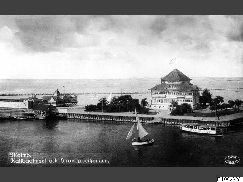 Hamnfärjan och Kallbadhuset, Strandpaviljongen i bakgrunden