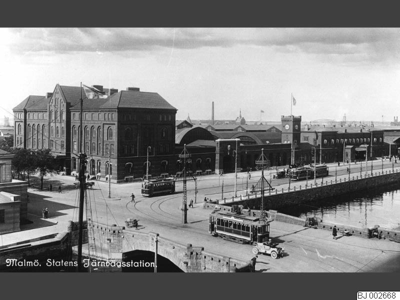 Mälarbron med Järnvägsstationen och Malmö spårvagnar