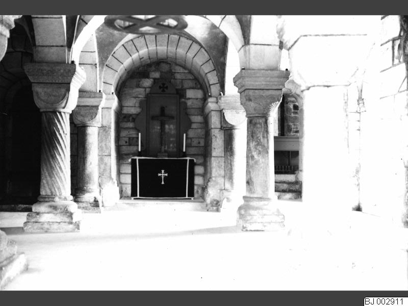 BJ 002911 :: kyrka, kyrkointeriör, altare, altarduk, kyrkoskulptur, valv
