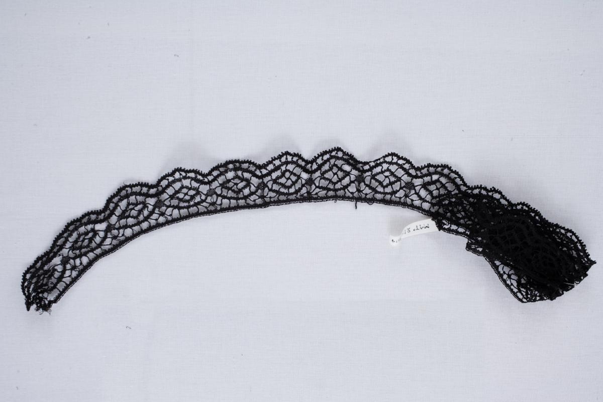 Knypplad spets. Uddspets av svart lingarn.