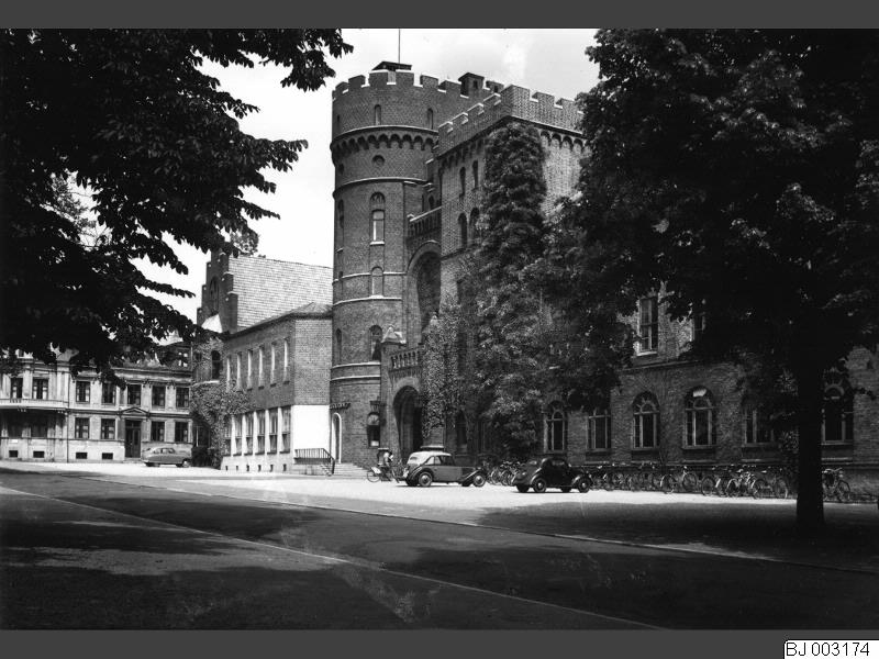 BJ 003174 :: universitet, stadsbebyggelse, bil, cykel, träd, restaurang