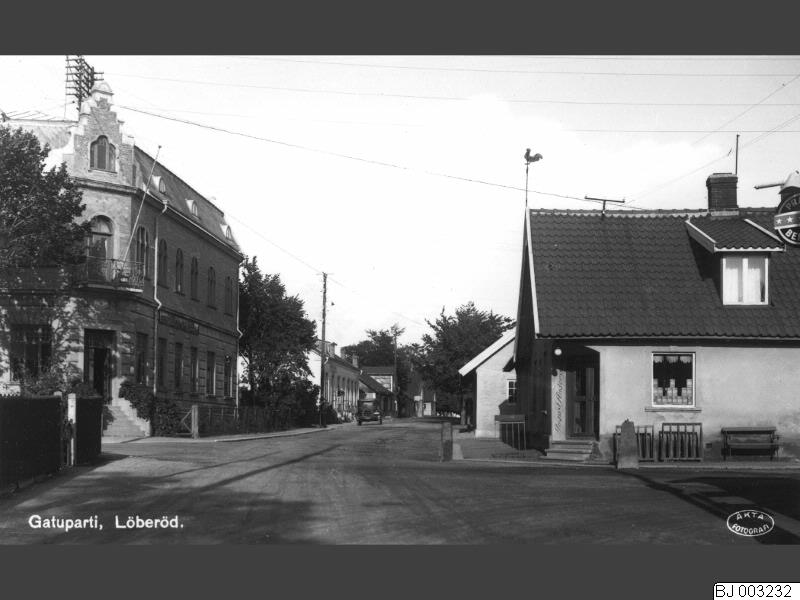 Löberöd. Gatuparti med butiker.