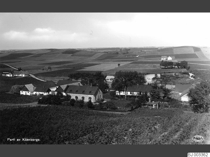 Fågelperspektiv av landskap med en by i förgr. Ingelstads härad