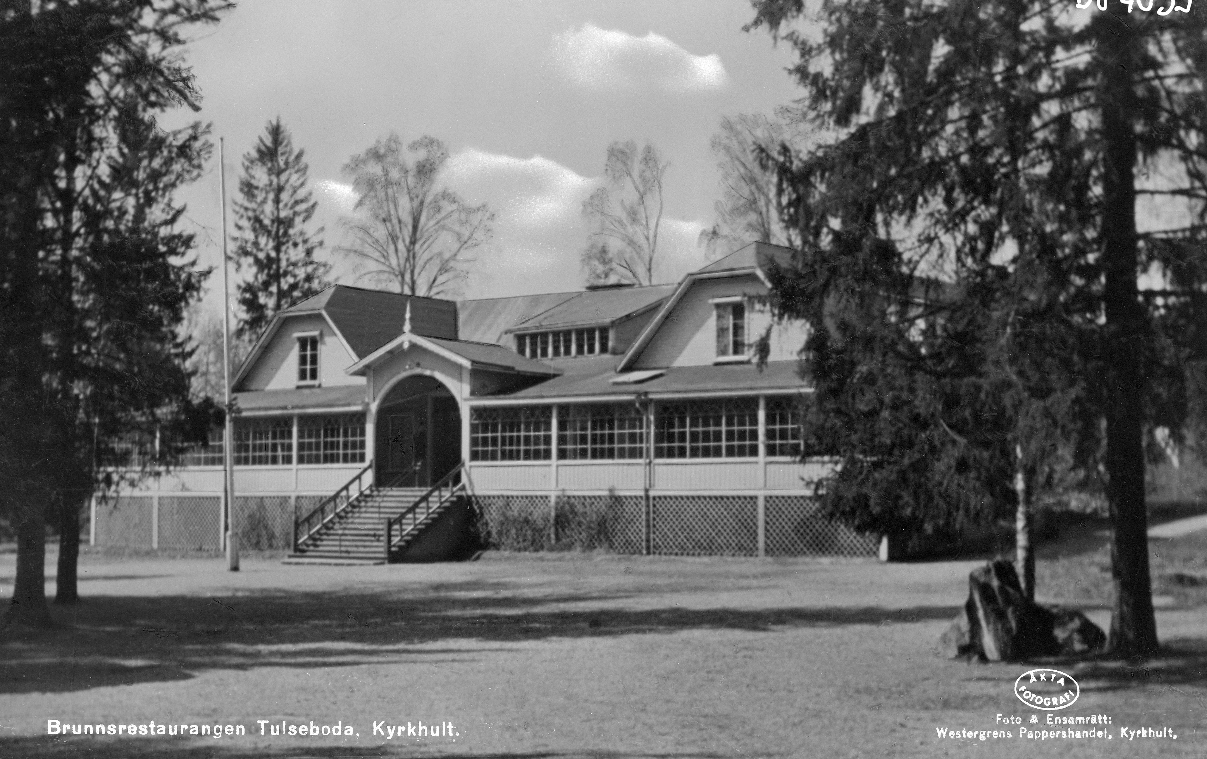 BJ 004035 :: trähus, träd, cykel, sjö