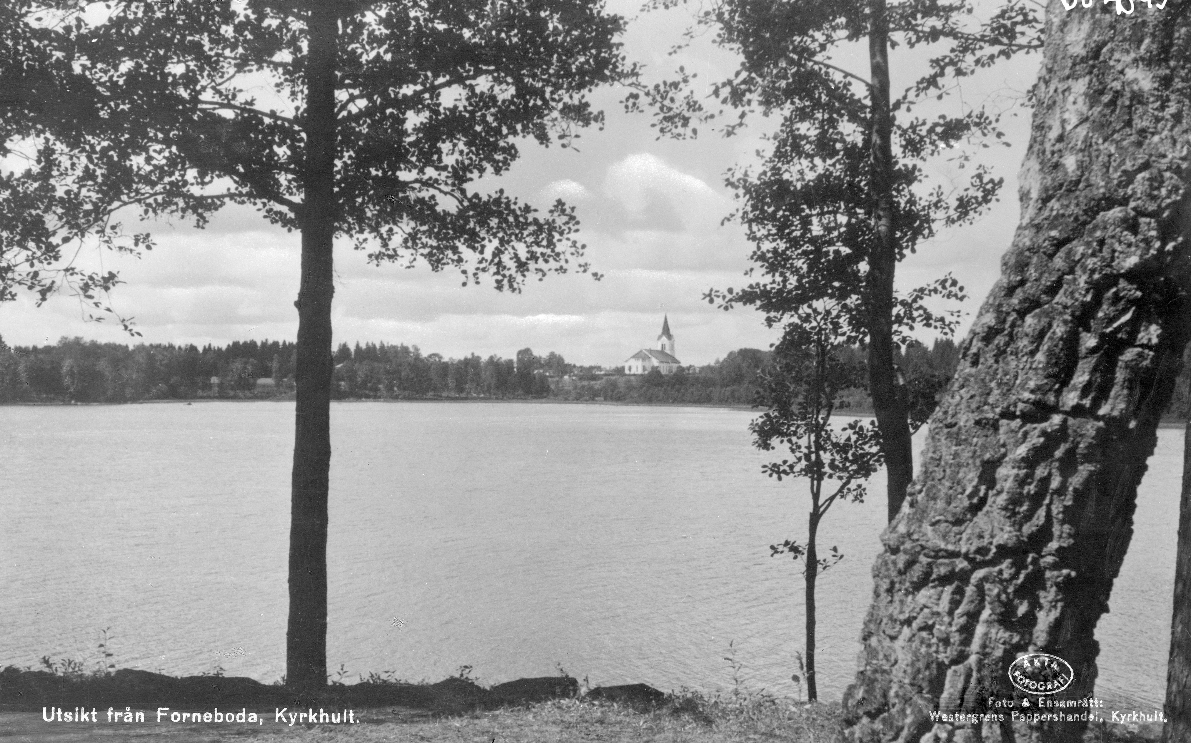 BJ 004043 :: kyrka, kyrkogård, kyrkogårdsmur, gravsten, grind, träd