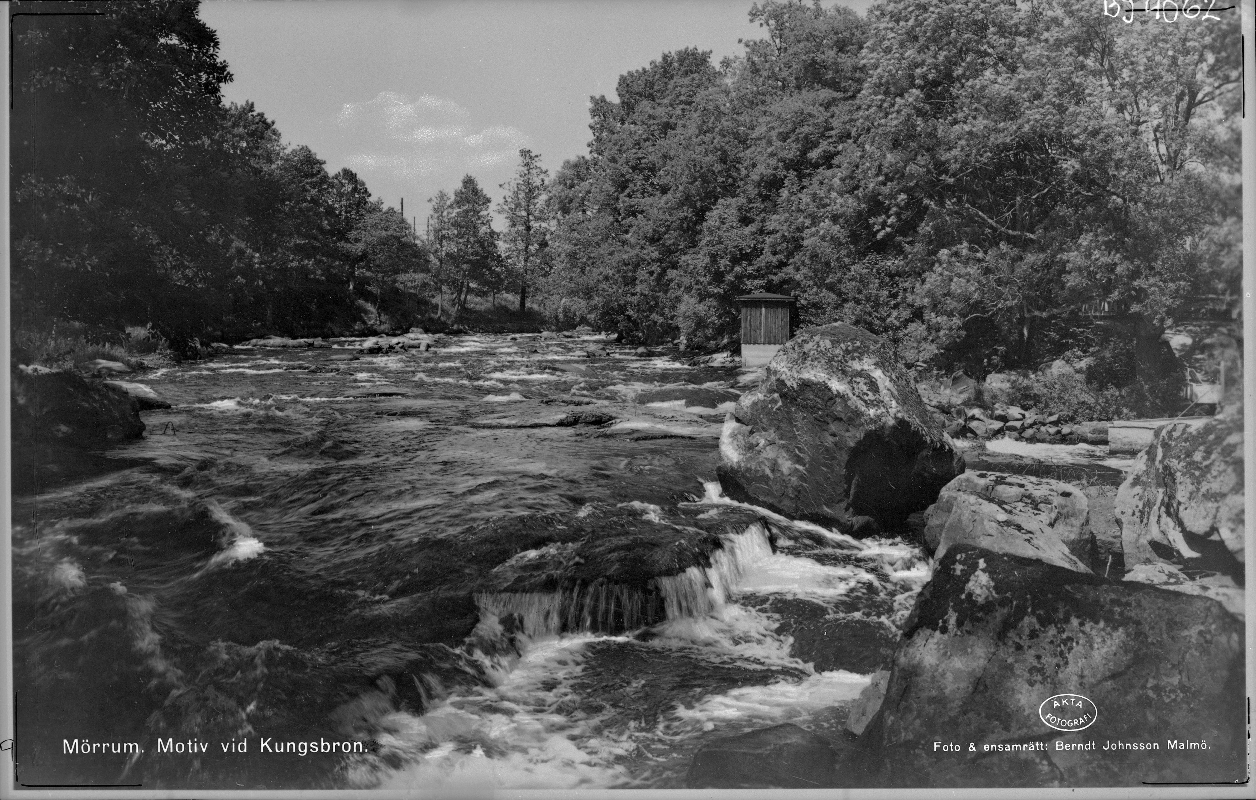 Mörrumsån med stora klippblock. Motiv vid Kungsbron.