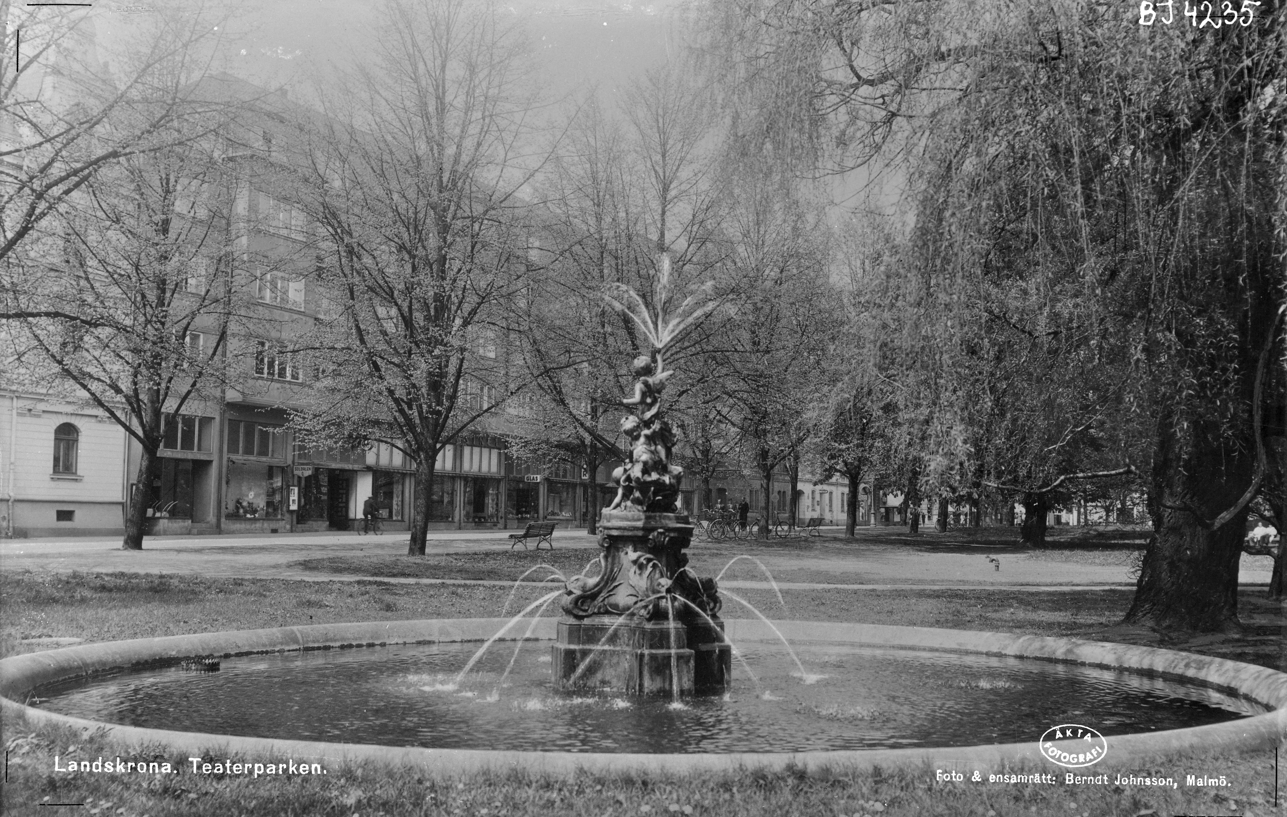 Landskrona. Teaterparken. Fontän med tre lekande putti.