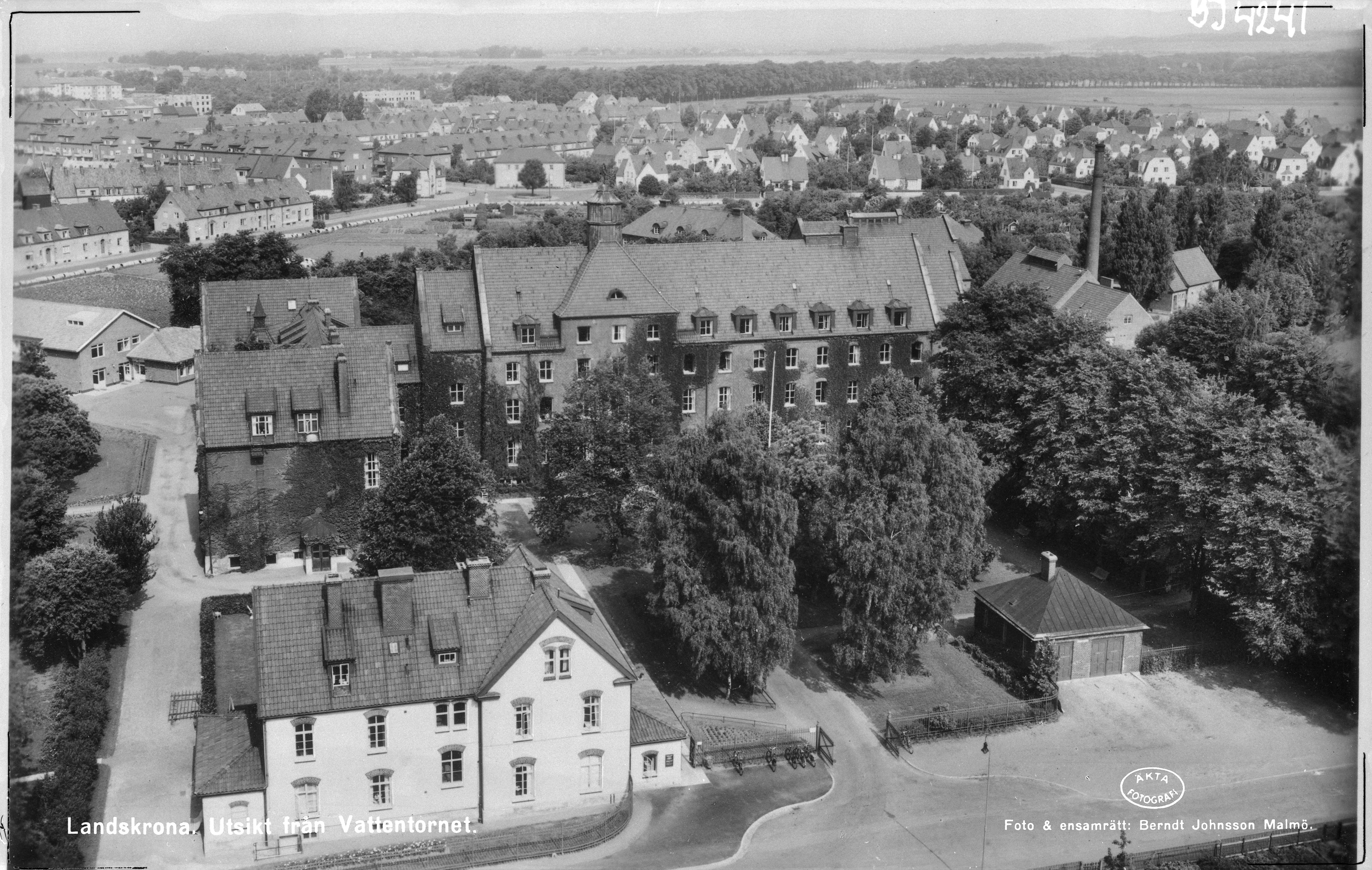 Landskrona. Utsikt från Gamla vattentornet mot Lasarettet.