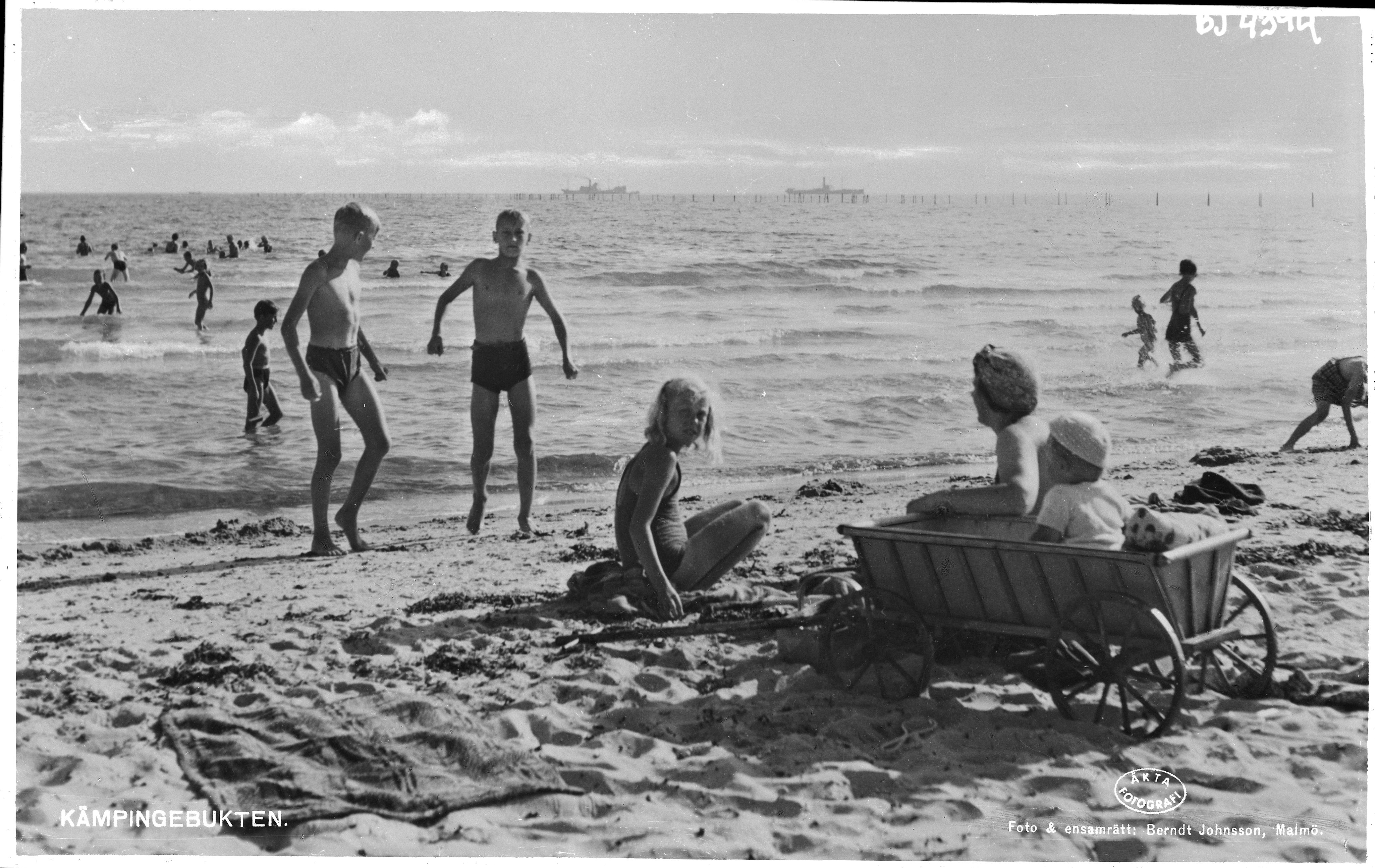 BJ 004394 :: badplats, strand, barn, baddräkt, havskust