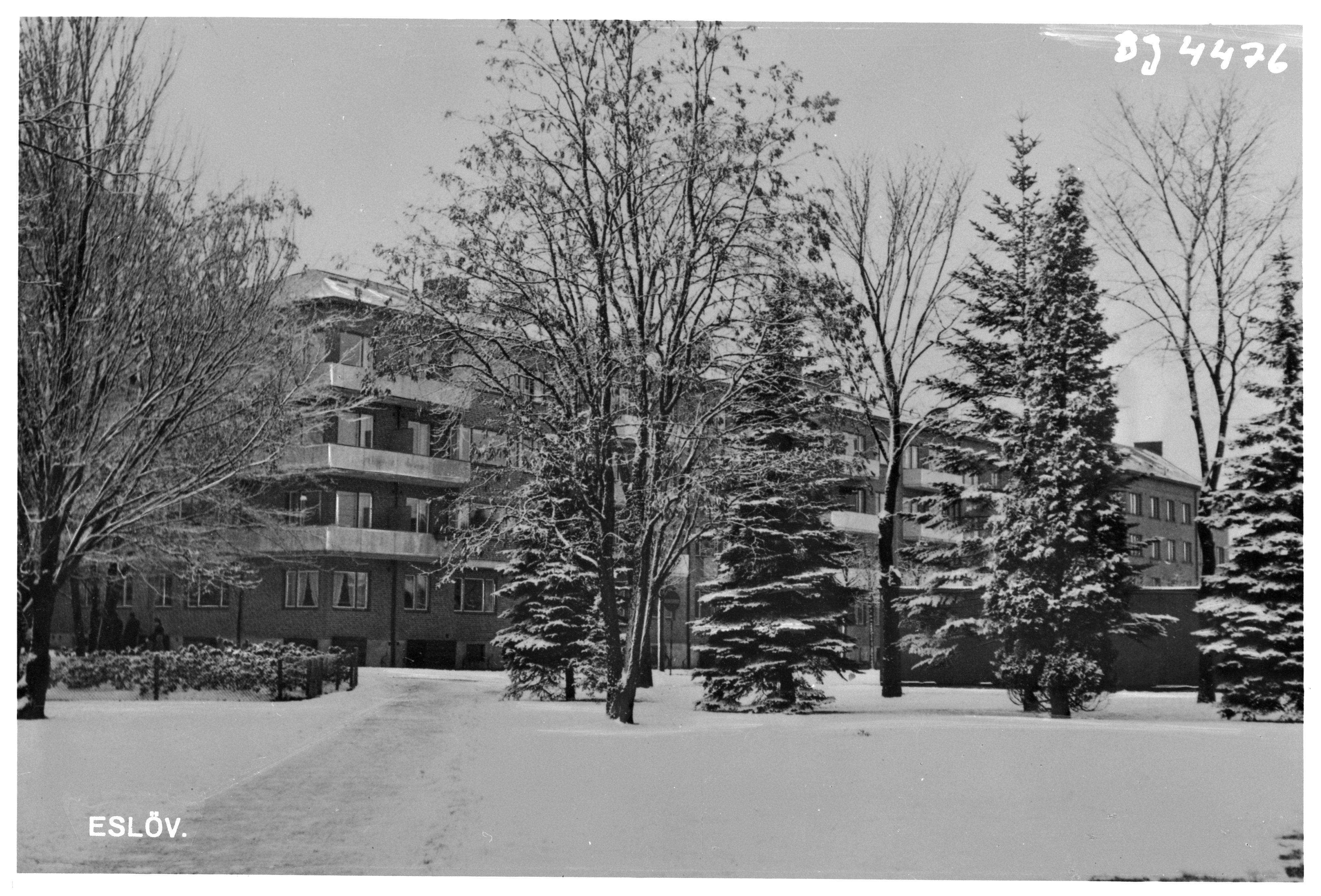 Vinterbild , träd framför ett hus