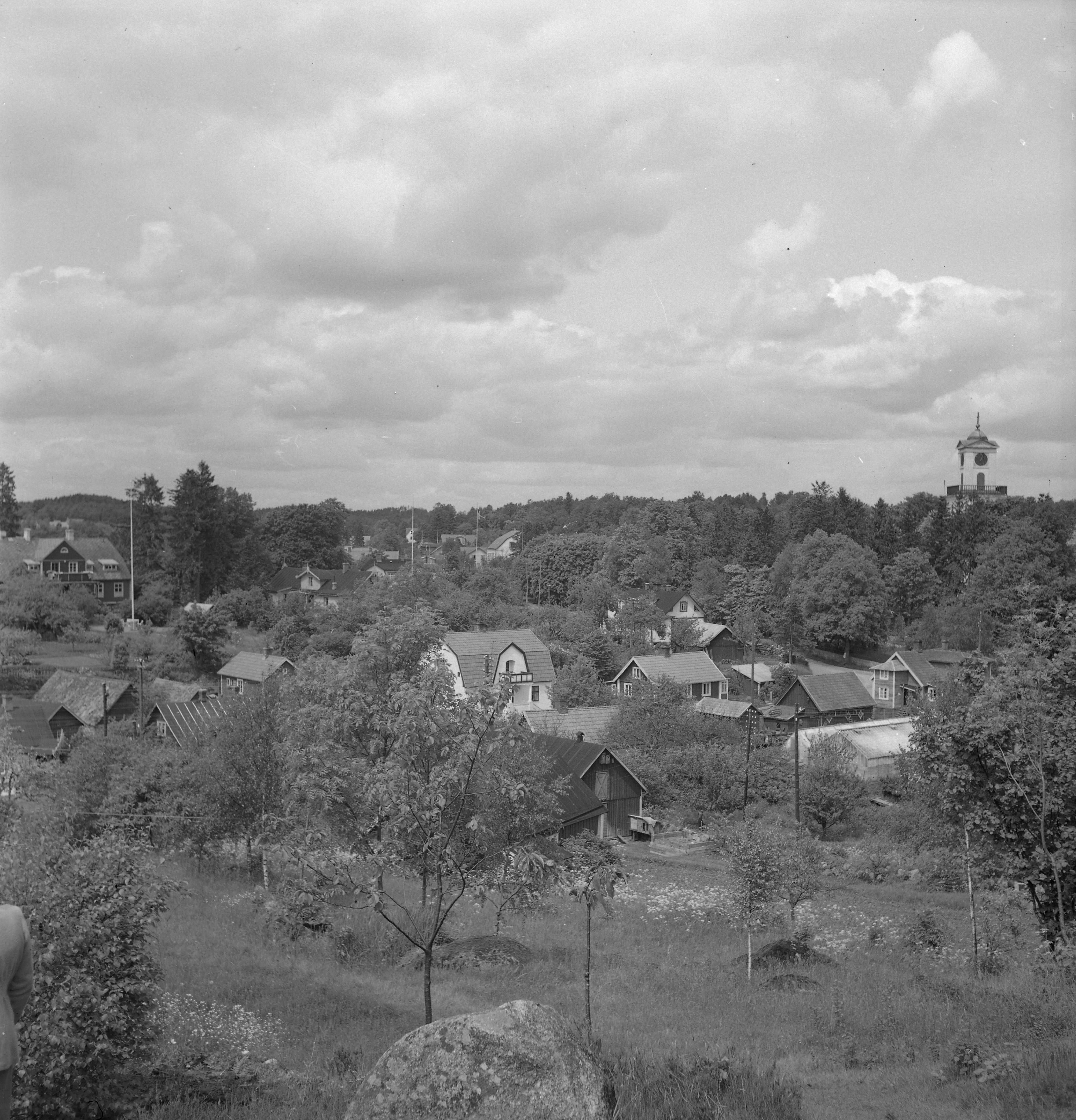 BJ 004666 :: tätortsbebyggelse, bostadshus, kyrka, skogsbygd
