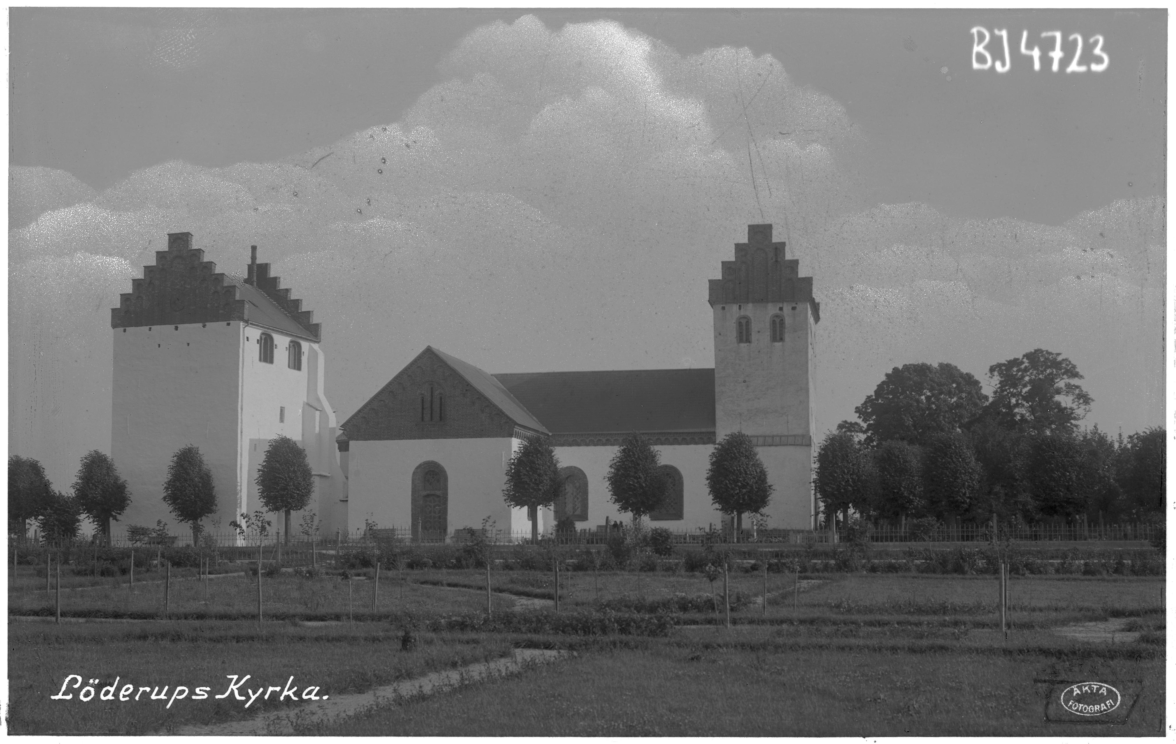 BJ 004723 :: kyrka, kyrkogård, klocktorn, träd