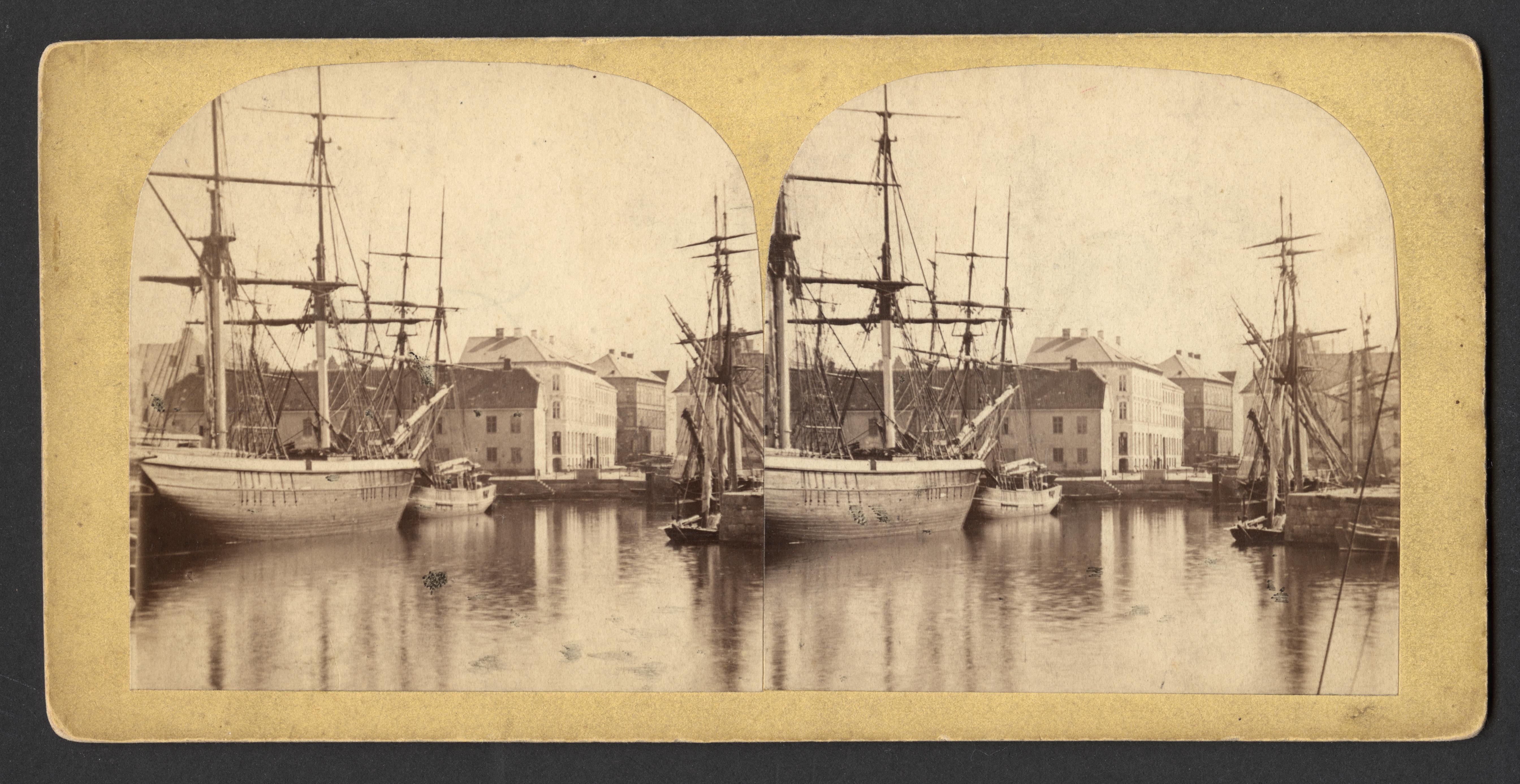 Suellshamnen, Inre Hamnen med gamla Tullhuset, stereoskopbild, MHM 7736:25.